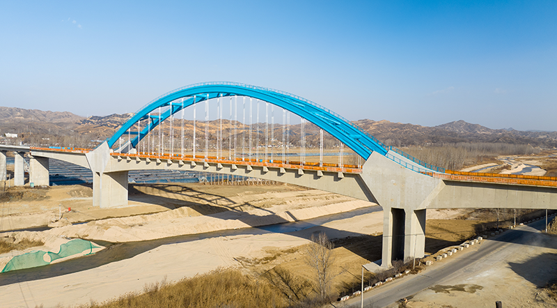 雄忻高鐵跨胭脂河大橋連續剛構拱橋順利建成,全橋用鋼量近800噸,吊桿68根,均由巨力索具制造施工。