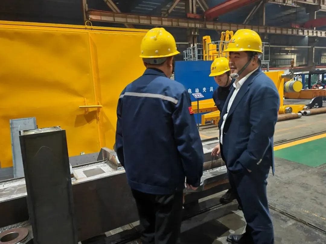 楊超先后來到鋼絲繩制造廠、鋼拉桿制造廠、冶金結構件制造廠、鍛造索具制造廠,深入了解各制造廠現(xiàn)場管理人員安排、場地施工安全標準、生產(chǎn)進度等情況。現(xiàn)場管理人員針對自己所負責的相關工作向楊超逐一匯報,并就施工中所面臨的難點疑問,提出了具體的建議和意見。